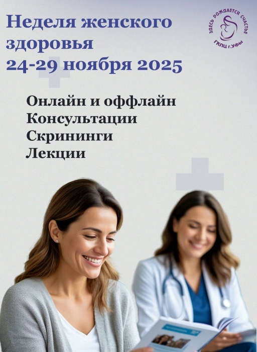 Неделя женского здоровья: консультации, прямые эфиры и школы для пациенток пройдут в ГБУЗ РБ Городском клиническом перинатальном центре УфыС 24 по 28 ноября 2025 года в рамках Недели женского здоровья женские консультации по адресам ул. Российская, 31 и ул. Кулибина, 40 проведут масштабную просветительскую акцию